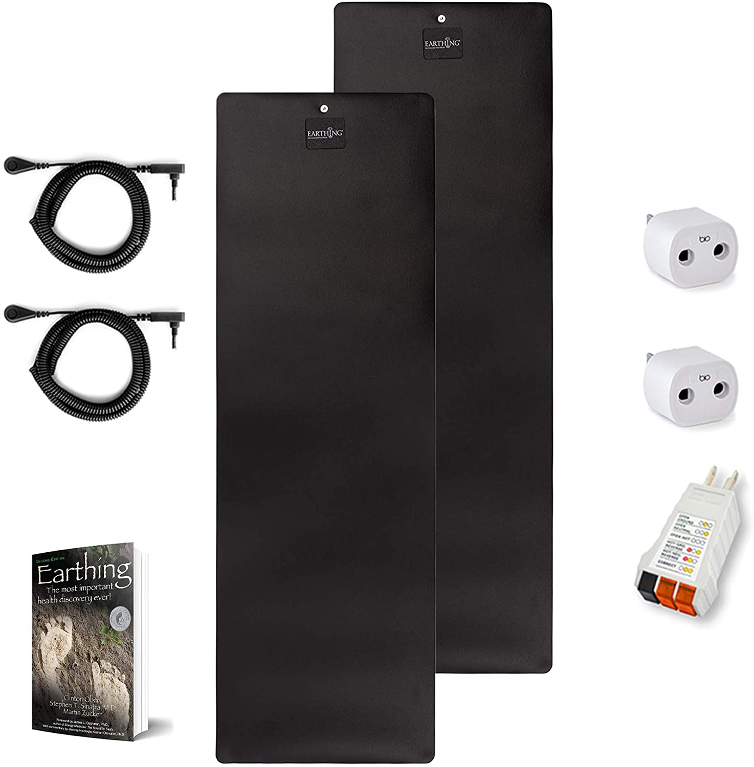 COMPLETE KIT: 2 Grounding Earthing Mats (12.5 x 29-inch/32 x 73.7 cm each), 2 Coil Cords with in-line current limiting 100k ohm resistors (15′) , 2 U.S. Safety Adapters, 1 Outlet Tester, PLUS a FREE copy of the book ‘Earthing: The Most Important Health Discovery Ever!’